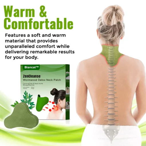 Biancat™ ZenCleanse Wormwood Detox Neck Patch offers immediate relief from a wide range of body pains. It effectively targets and alleviates discomfort in the neck, back, shoulders, and other areas prone to tension and pain. Whether you’re experiencing muscle soreness, stiffness, or general discomfort, this powerful patch provides soothing relief, promoting a sense of relaxation and well-being.
