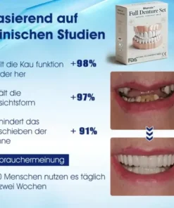 Sofort Perfektes Lächeln: Verwandeln Sie Ihr Lächeln sofort mit [Produktname]. Erleben Sie die Zufriedenheit, eine makellose, maßgeschneiderte Passform sofort zu erreichen. Unser innovatives Zahnersatz-Set beseitigt das Unbehagen von schlecht sitzenden Prothesen und bietet Ihnen ein eng anliegendes, natürliches Gefühl, das Ihren Zahnersatz wie einen echten Teil Ihres Mundes anfühlen lässt. Verabschieden Sie sich von schmerzenden Stellen und Irritationen – [Produktname] bietet sofortige Erleichterung und ermöglicht es Ihnen, Ihr Lächeln mit neuem Selbstbewusstsein und Komfort zu genießen. Genießen Sie einen nahtlosen Übergang zu einem besser sitzenden, komfortableren Zahnersatz-Erlebnis ohne Verzögerung.