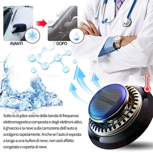 L’energia elettromagnetica della banda di frequenza composita è in grado di influenzare efficacemente il ghiaccio e la neve a contatto con la carrozzeria dell’auto, rendendo attivo il suo movimento molecolare e sciogliendo così rapidamente il ghiaccio e la neve sulla superficie dell’auto. Inoltre, questa speciale banda di frequenza composita ha solo un impatto impercettibile sul movimento delle molecole d’acqua, senza radiazioni e senza effetti collaterali sui materiali dell’auto o sul corpo umano.
