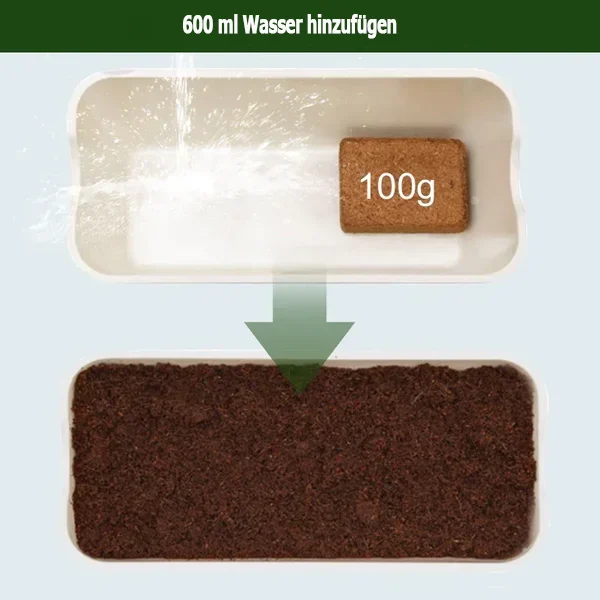 - Hohe Expansionsrate: Das Kompressionsverhältnis eines 100-Gramm-Kokosziegels beträgt 1:8.