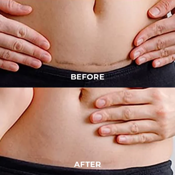 - Regulates collagen production in the scarred skin, reducing its texture, discoloration, and thickness