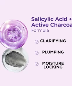 This mask has a clarifying Salicylic Acid + Active Charcoal Formula that deeply cleanses the pores, drawing out the dirt, oil, and impurities that are blocking them and visibly reducing the size of prominent pores.