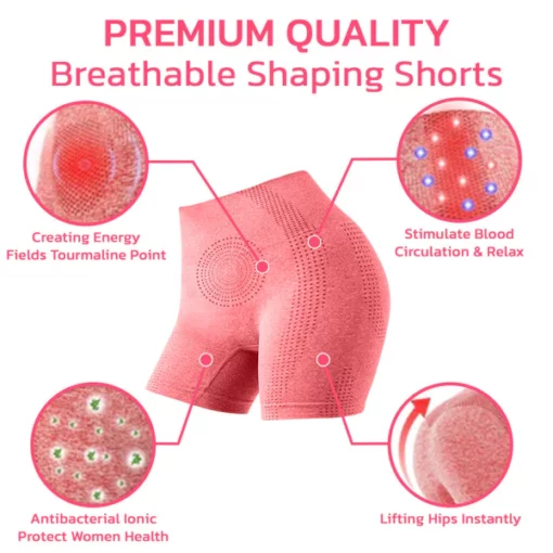 The BLUESKY ™ IONIC Tourmaline Fabric Breathable Shaping Shorts utilize massaging properties and ion release to stimulate collagen production. This process helps tighten and lift sagging or misshapen buttocks, resulting in the disappearance of loose skin and excess fat.