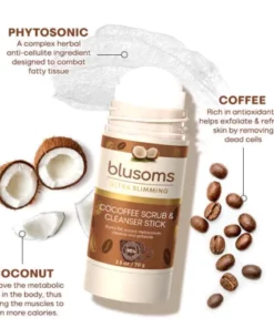 Blusoms™ Cacao Coffee Scrub & Cleanser stick is a cutting-edge product that utilizes the powerful properties of coconut, coffee, and phytosonic to promote weight loss and reduce cellulite. The synergistic effects of these ingredients work to enhance skin elasticity, firmness, and hydration, while simultaneously reducing the appearance of cellulite.