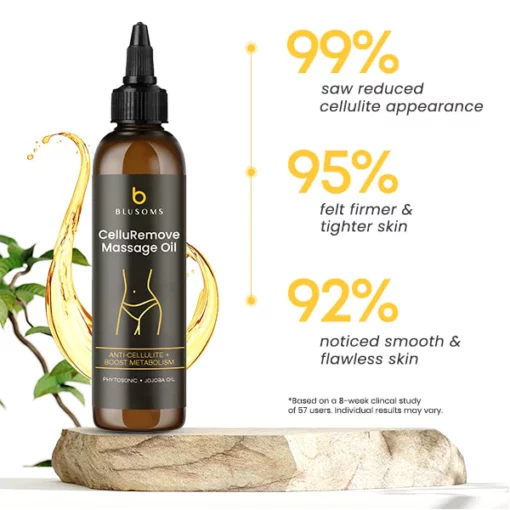Blusoms™ CelluRemove Massage Oil is a unique product that can help you achieve a tighter, smoother, and firmer body. This body oil works differently from other products on the market because it contains Phyosonic that are known to tighten skin and reduce cellulite. They work by increasing blood flow to the area where they’re applied, which helps to break down fat deposits and remove them from the skin. This process causes the skin to feel tighter and firmer than it did before application of the body oil.