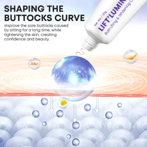 Blusoms™ LIFTLumina Cream is a powerful and effective cream that is clinically proven to reduce the appearance of cellulite, lift & whitening the skin around the butt and thighs.