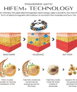 HIFEM technology, or High-Intensity Focused Electromagnetic technology, works by generating powerful electromagnetic waves that stimulate deep muscle contractions in the body. This results in an increased metabolic rate, leading to the burning of excess calories and fat cells, thereby promoting weight loss.