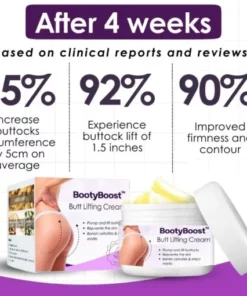 In a clinical study conducted on 100 participants, BootyBoost™ Butt Lifting Cream demonstrated impressive results. Over a period of four weeks, participants experienced an average buttock lift of 1.5 inches, along with improved firmness and contour. The study confirmed the cream’s effectiveness and safety.