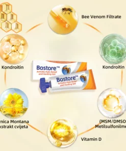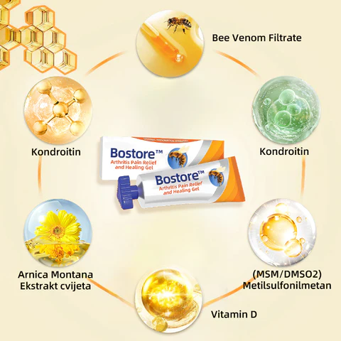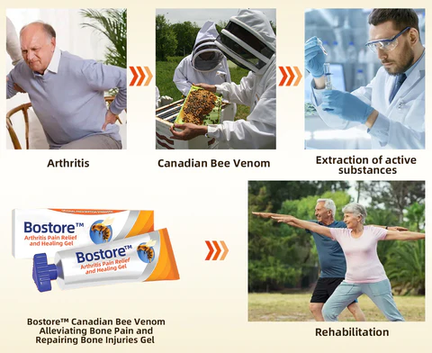 Bostore™ Canadian Bee Venom Alleviating Bone Pain and Repairing Bone Injuries Gel contains six powerful and proven ingredients that have been used to effectively treat arthritis and bone-related diseases in millions of people around the world.