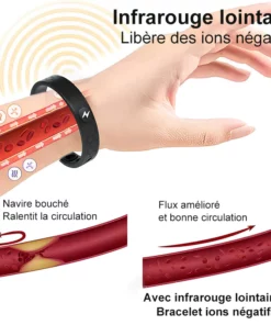 Le bracelet utilise un élément infrarouge lointain qui émet simultanément des ions négatifs. Il vous suffit de porter le bracelet pour profiter des bienfaits curatifs à la fois de l’infrarouge lointain et des ions négatifs.