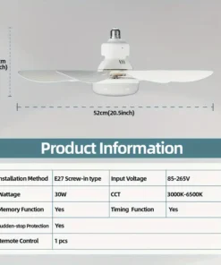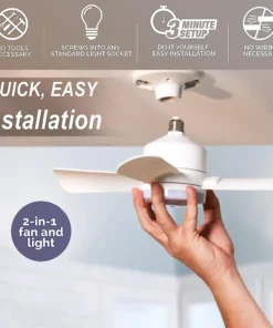 Simply remove the bulb out of the socket, screw in the fan light, press the remote, and instantly you’re enjoying cool air!
