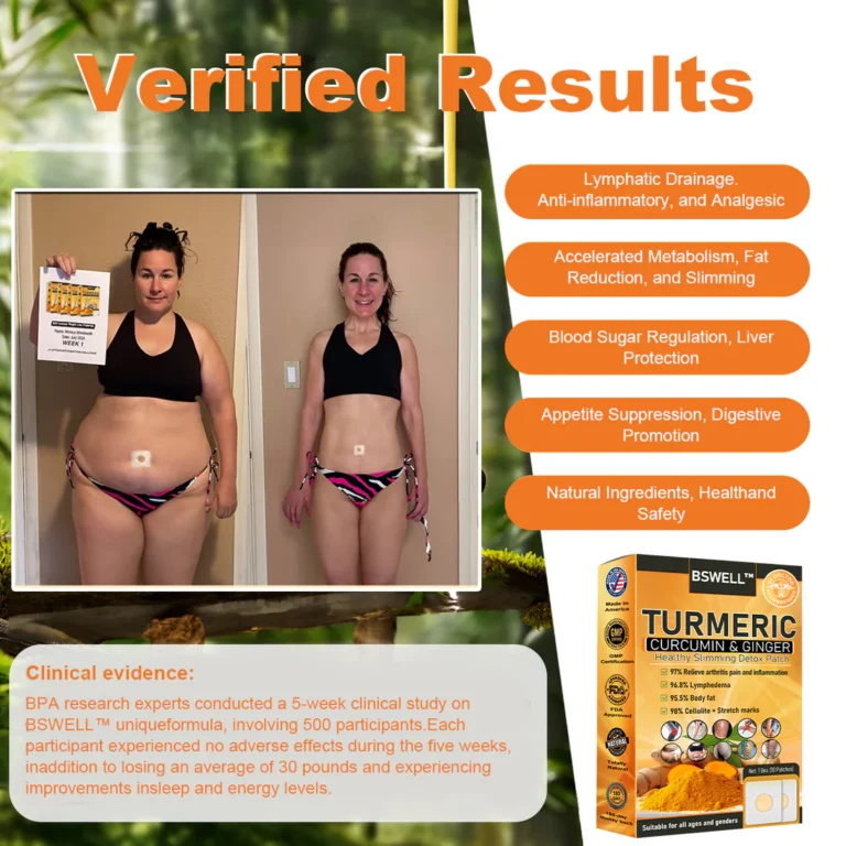 The digestive and lymphatic systems are essential detox pathways in the body. That’s why we’ve developed BSWELL™ Turmeric Super Slimming All-in-One Patch, featuring curcumin extracted from turmeric, along with ice plant extract and four other natural herbs. These highly active ingredients are concentrated and encapsulated in the silk wrap of the slimming patch. When applied, the direct contact between the abdomen and the silk wrap, infused with curcumin and other natural herbs, stimulates intestinal peristalsis. This allows for faster and more effective penetration into the lymphatic system. By clearing lymph nodes to expel waste and supporting liver detoxification and toxin absorption, it enhances metabolism, resulting in effortless fat loss, inflammation reduction, and an overall healthier body.