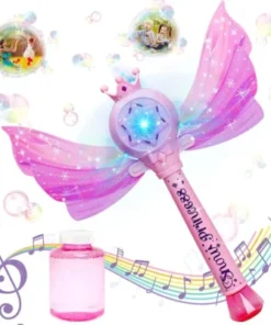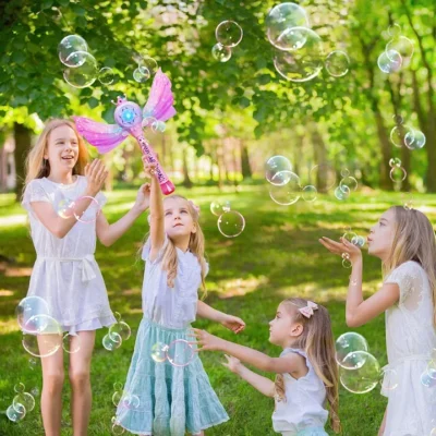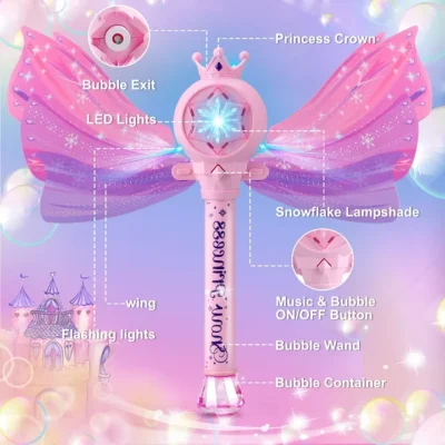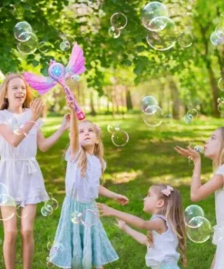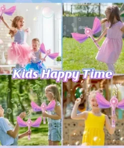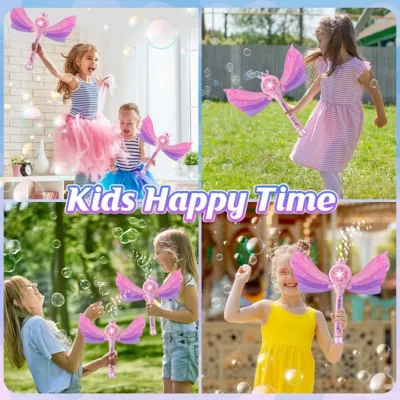 [ EASY TO ASSEMBLE AND DETACHABLE WINGS ] Three AA 1.5V NEW batteries are required for the bubble machine. The wings are also detachable. When the wings are installed, it is an adorable butterfly; when they are removed, it is a fashionable magic wand. Compared with others, this wing is not easy to fall off, and children can hold it and play everywhere. Awesome bubble machine toy for kids.