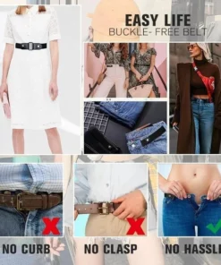 To use this elastic belt, just snap on once and let you forget that you’re wearing a belt all day. Hassle-free dressing, save time for bathroom breaks! Better yet, leave them on your go-to pairs of pants, and don’t even think about putting on belts – speed up your morning routines! - INVISIBLE BUCKLELESS BELT