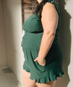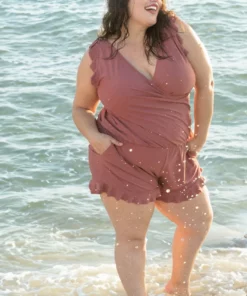 The Swim Romper is features with crossed v-neck, ruffle shoulder and hem design, nursing-friendly for moms and create a flattering look in style, ruffled sleeves and shorts come for a sophisticated take on a tropical-inspired look.