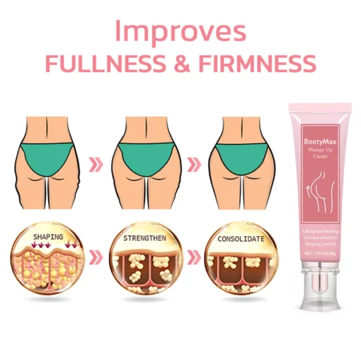 The BootyMax Plumpy Up Cream is safe and non-irritating to use, deeply nourishing and firming your hip skin, boosting a more shaped and larger butt.