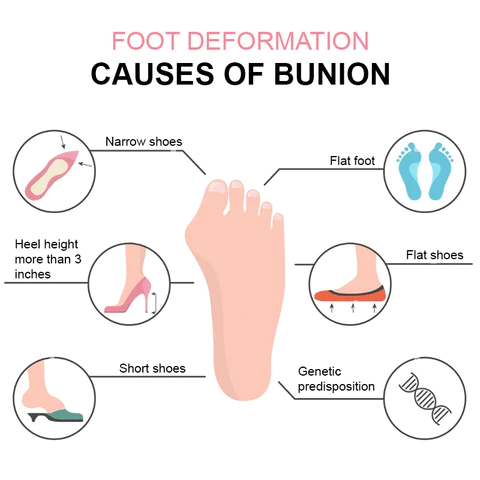 Bunions are generally thought to be genetic. They occur because of faulty foot structure, which is inherited. Some conditions that contribute to the development of bunions include flat feet, excessively flexible ligaments, and abnormal bone structure. Some experts believe shoes that don’t fit properly cause bunions, but others think shoes only worsen an existing structural problem.