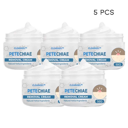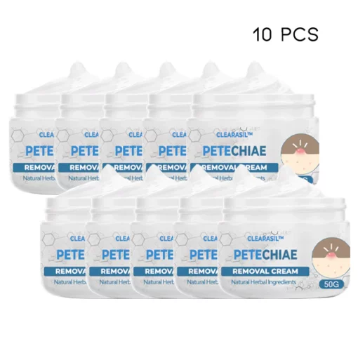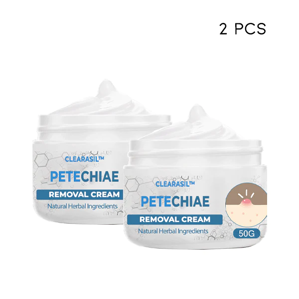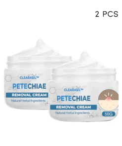 PETECHIAE ARE SMALL RED OR PURPLE DOTS CAUSED BY BROKEN CAPILLARIES UNDER THE SKIN. THESE SPOTS ARE FREQUENTLY FOUND ON THE FACE, HANDS, AND CHEST OF YOUNG PEOPLE, ESPECIALLY WOMEN. SOME PEOPLE FEEL EMBARRASSED ABOUT THEIR APPEARANCE AND WANT TO REMOVE THESE PETECHIAE. CLEARASIL™ PETECHIAE REMOVAL CREAM IS A FAST-ABSORBING CREAM THAT REMOVES CHERRY ANGIOMAS, WHICH ARE SKIN-COLORED BLOOD SPOTS.