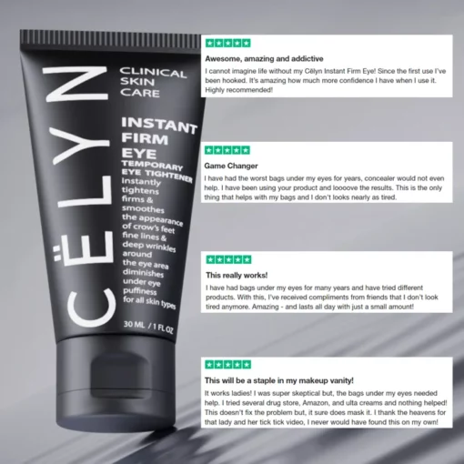 Thanks to our Cëlyn Instant FIRMx Eye Tightener, you can achieve an amazing youthful & rested glow in just 5 minutes – all without expensive treatments or procedures.
