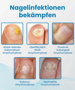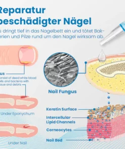 - Sanft auf beschädigte Nägel und/oder andere Pilzstellen auftragen.