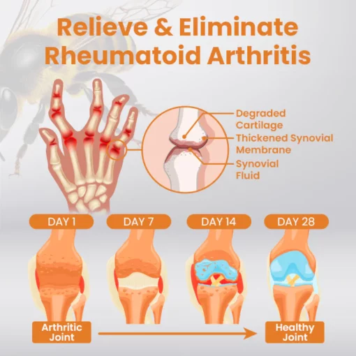 Bee venom is a complex mixture of compounds that is naturally produced by bees. The main component of bee venom is melittin, a biologically active protein secreted by the needle glands of bees. It has a strong anti-inflammatory and analgesic effect, which can effectively relieve arthritis pain and swelling. It also contains enzymes, amino acids, sugars, lipids and vitamins that have a certain effect on promoting joint tissue repair, improving joint elasticity and mobility.