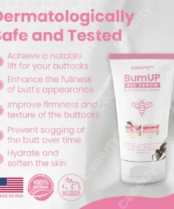 Formulated with powerful ingredients, including bee venom known for its skin-firming properties, Ceoerty™ BumUP is designed to sculpt and shape your buttocks, giving you a firmer and more defined appearance. Bee venom contains compounds that stimulate the production of collagen and elastin in the skin. By increasing collagen and elastin production, bee venom can help improve skin elasticity and firmness, reducing the appearance of fine lines and wrinkles.