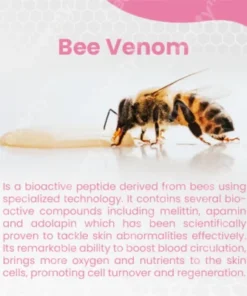 Bee Venom is a bioactive peptide derived from bees using specialized technology. It contains several bioactive compounds including melittin, apamin and adolapin which has been scientifically proven to tackle skin abnormalities effectively. Its remarkable ability to boost blood circulation, brings more oxygen and nutrients to the skin cells, promoting cell turnover and regeneration. This can result in a healthier, more youthful-looking complexion with improved firmness and elasticity.