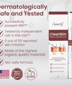 It’s not a good idea to try to remove skin tags by yourself since they can bleed heavily or get infected. That is why we created Ceoerty™ ClearSkin Mole & Tag Remover – an all-natural solution to achieve flawless and healthy looking skin. It works by shrinking and drying the tags until they fall off naturally. It uses keratolytic action to remove layers of the skin tag until it completely disappears.