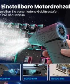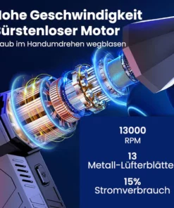 Ihr vielseitiger Reinigungsbegleiter, mit dem Sie verschiedene Aufgaben schnell erledigen können. Egal, ob Sie Ihren Computer entstauben, den Garten von Laub befreien oder Ihr Auto trocknen, dieses Gebläse liefert sofortige Reinigungskraft.