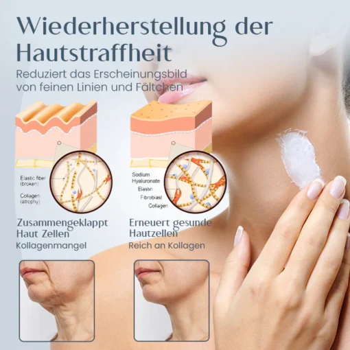 Dreifach-Peptid mit Saphir: Dieser als Höhepunkt der Peptidtechnologie gefeierte Komplex dringt tiefer in die Hautschichten ein, um schnellere Ergebnisse zu erzielen, und wirkt effektiv gegen kreppige und schlaffe Haut.