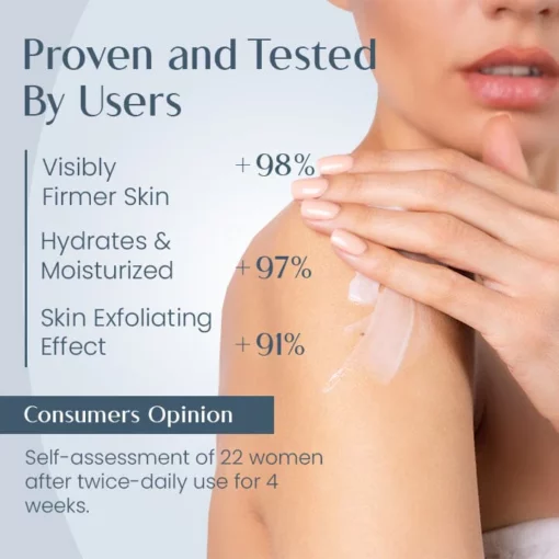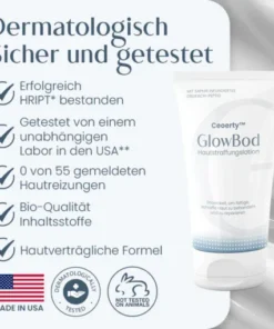“Ceoerty™ GlowBod hat mich wirklich beeindruckt. Nachdem ich es wochenlang benutzt habe, habe ich eine große Verbesserung der schlaffen Haut an meinen Armen festgestellt. Sie ist straff und mit Feuchtigkeit versorgt, und das Beste ist, dass diese lästigen Hautgrübchen verschwunden sind! Ich empfehle dieses Produkt jedem, der seine Haut wieder straffer machen möchte.” – Gertrude Wolfe, Georgia