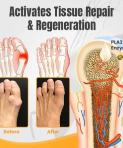 In our specialized formula, we harness the potent power of PLA2 Enzymes (bee venom component), to offer a powerful function in bunion care. PLA2 enzymes stimulate the release of growth factors, pivotal molecules that orchestrate tissue repair and regeneration processes in injured tissues. These growth factors play pivotal roles in fostering the formation of new connective tissue and aids in the regulation of inflammation within the bunion-affected area.