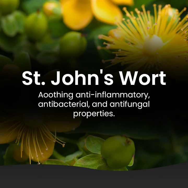 St. John’s Wort is included for its soothing anti-inflammatory, antibacterial, and antifungal properties.