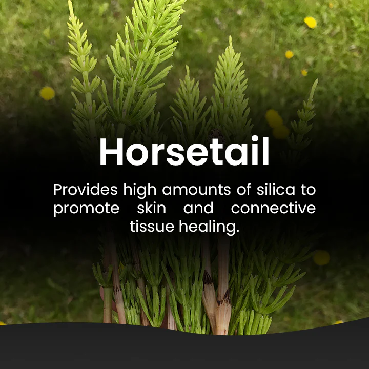 Horsetail provides high amounts of silica to promote skin and connective tissue healing.