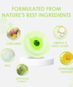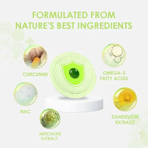 - Ingredients: N-acetylcysteine (NAC), omega-3 fatty acids, Dandelion extract, Curcumin, and Artichoke