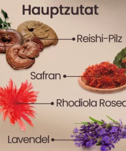 Wechselwirkung mit dem Immunsystem: Bestandteile wie der Reishi-Pilz sind reich an Polysacchariden und β-Glucanen, die mit dem Immunsystem interagieren und die Aktivität von Immunzellen modulieren können. Dies trägt dazu bei, Entzündungsreaktionen im Körper zu reduzieren und den Umgang mit Stress zu verbessern, was wiederum die allgemeine psychische Gesundheit fördert.