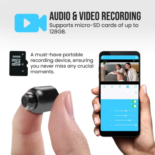High Definition: The Ceoerty™ NanoLens HD 1080P Compact Wi-Fi Camera features full HD 1080P video capture capability, ensuring each frame is clear and visible even in dim indoor environments. It’s perfect for capturing vivid family videos or precise indoor monitoring.