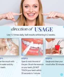 - Apply the essence on your teeth, including the gum line, using the end of the pen