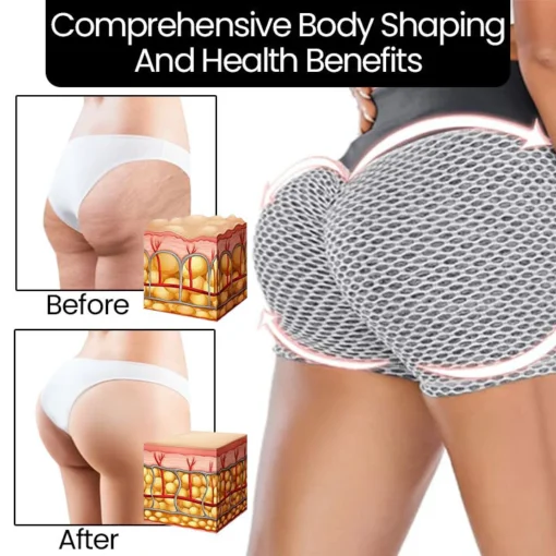 “The Ceoerty™ SculptFast Ion Shaping Shorts massage and release ions that stimulate collagen production, eliminating loose skin and excess fat from the buttocks. As a result, sagging and misshapen buttocks can be firmed and lifted! The shorts contain tourmaline minerals (valuable natural minerals) that stimulate the abdominal and hip muscles through acupressure, enhancing blood circulation and relaxation. They are intelligently designed, so you look smooth and shaped from every angle. When worn, they are skin-friendly and breathable, four times lighter than regular shorts, but with ten times the body shaping effect – you can create the perfect body curvature right at night!”