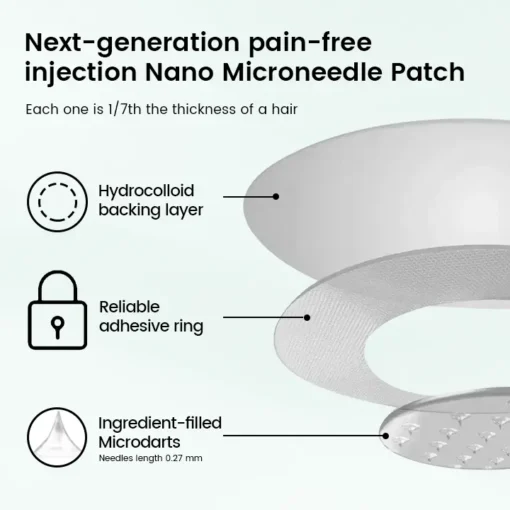 This nano microneedle patch uses advanced GLP-1 delivery technology, allowing the active ingredients to penetrate deeply into the skin. It helps regulate insulin secretion, suppress glucagon, and delay gastric emptying, which effectively aids in blood sugar control and fat metabolism. Meanwhile, Matrixyl 3000 supports skin regeneration and boosts elasticity, helping users maintain firm, smooth skin throughout their weight loss journey.
