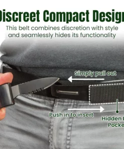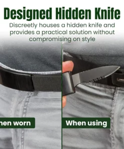 Our Survival Tool Belt discreetly houses a hidden Tool and provides a practical solution without compromising on style. It is designed for versatility and ensures preparedness for unexpected situations with its concealed yet accessible blade. This belt seamlessly integrates a hidden Tool, providing a subtle advantage in demanding situations.