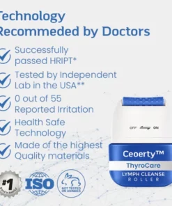 The Ceoerty™ ThyroCare Lymph Cleanse Roller stands out with its exceptional quality and reliability, further reinforced by its certification by authorities. This certification serves as a testament to the roller’s compliance with stringent standards and regulations, ensuring its safety and effectiveness.