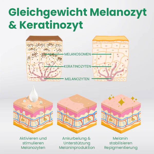 ✓ Unterstützung bei der Wiederherstellung des natürlichen Gleichgewichts von Melanozyten und Keratinozyten in der Vitiligo-Epidermis