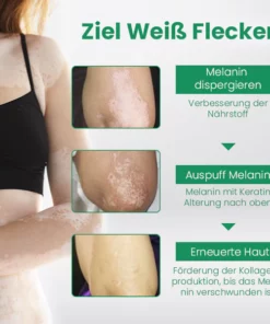 Mit ihren starken feuchtigkeitsspendenden Eigenschaften dringt sie selbst in die dicksten Hautpartien ein und verschafft sowohl sofortige als auch langfristige Linderung. Diese Creme ist hochwirksam bei der Behandlung einer Reihe von Erkrankungen, darunter Vitiligo, Leukoplakie, Hautverfärbungen und verschiedene Pigmentstörungen. Sie eignet sich für die Behandlung von hyperpigmentierten Hautproblemen am ganzen Körper.