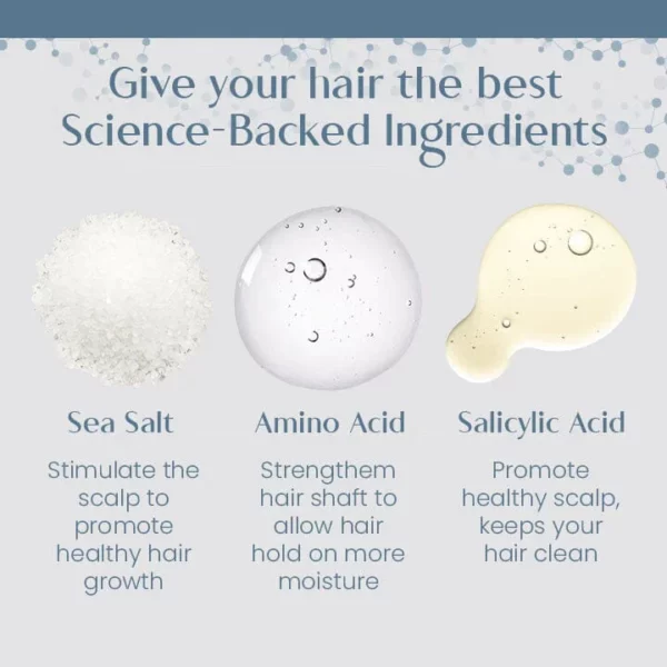 Ceoerty™ Root Renew Nourishing Hair Scrub contains Salicylic acid, a potent exfoliant that unclogs hair follicles and eliminates excess oils and dead skin cells. This buildup can block our hair follicles that could result in hair loss. By clearing away this buildup, the scalp can breathe, and the follicles can absorb the essential nutrients necessary for promoting healthy hair growth.