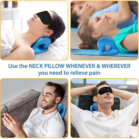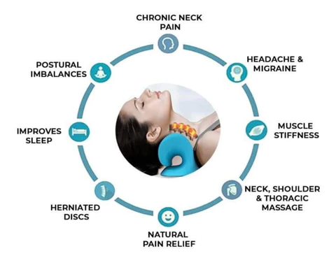 Our Cervical Neck Traction Pillow targets acupuncture points around the neck and relieves pressure from the neck/shoulder pain, bulging discs, pinched nerves and sore muscles.