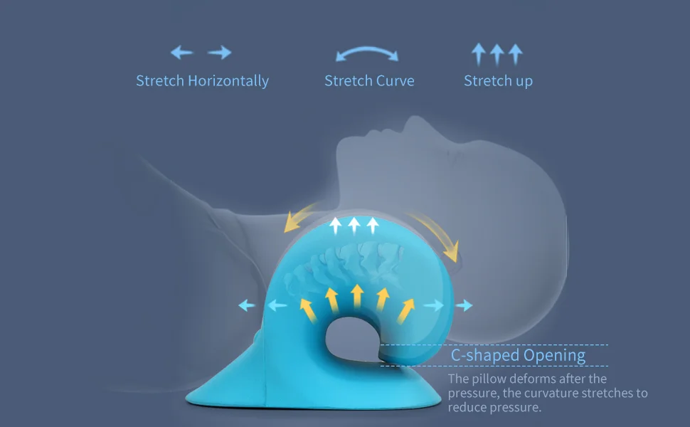 The Cervical Traction Pillow gently and naturally stretches your neck in order to help decompress your spine, increase blood flow, and circulation, and stretch your muscles while helping to align the cervical curve.