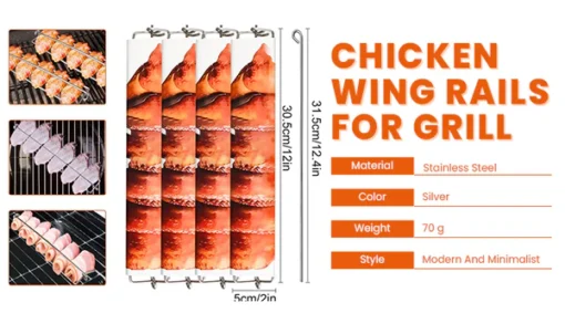Package Includes: 1 x Chicken Wing Rails for Grill