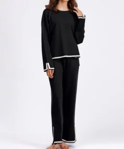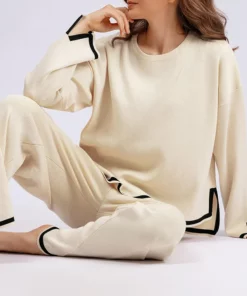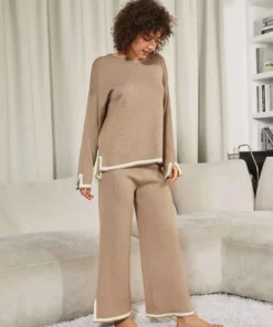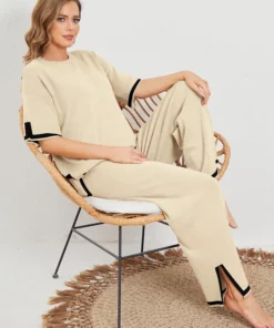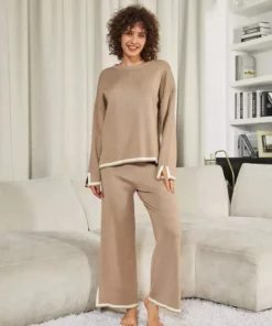 Cute knit outfits are comfy and stylish. Our outfit can be worn as a set or as separates for a variety of occasions. You could wear at home as pajamas set, womens loungewear set, or outside on street, vacation, shopping as knit sweatsuits.