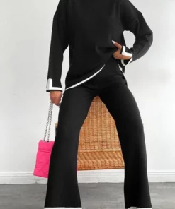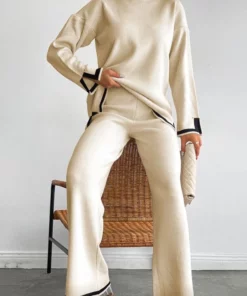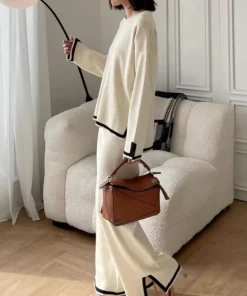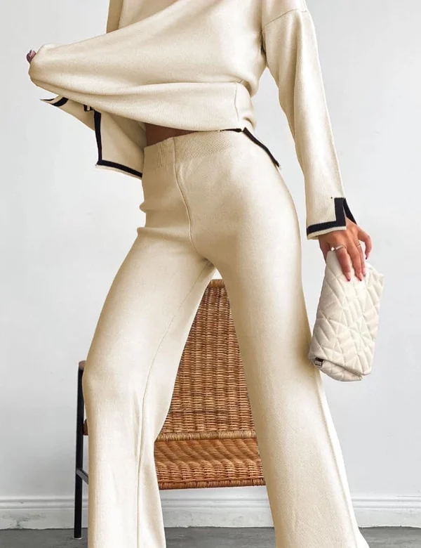 Featuring a crewneck knit crop top and high waist loose knit pants for a trendy and chic look, made with a super-soft knit fabric, our Classy Elastic Knit Lounge Set is the perfect choice for a cozy instant outfit.